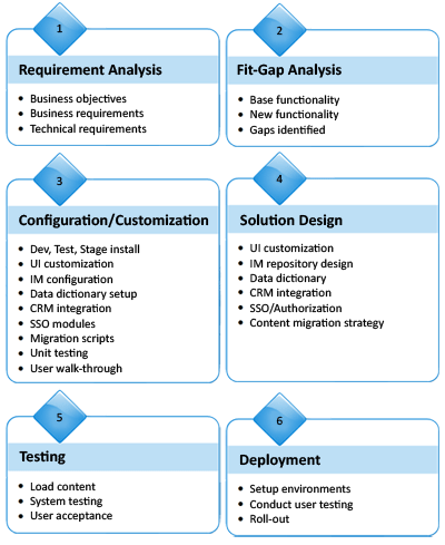 PRS Consulting Services’s Oracle Knowledge implementation services follow a formal process spanning requirements analysis, fit-gap analysis, solution design, customization, configuration, testing and deployment. Our experience-based solution design includes user interface customization, information manager repository design, data dictionary development and content migration. Based on a comprehensive fit-gap analysis, PRS Consulting Services plans and executes product configuration and customization tailored to the client’s specific needs.